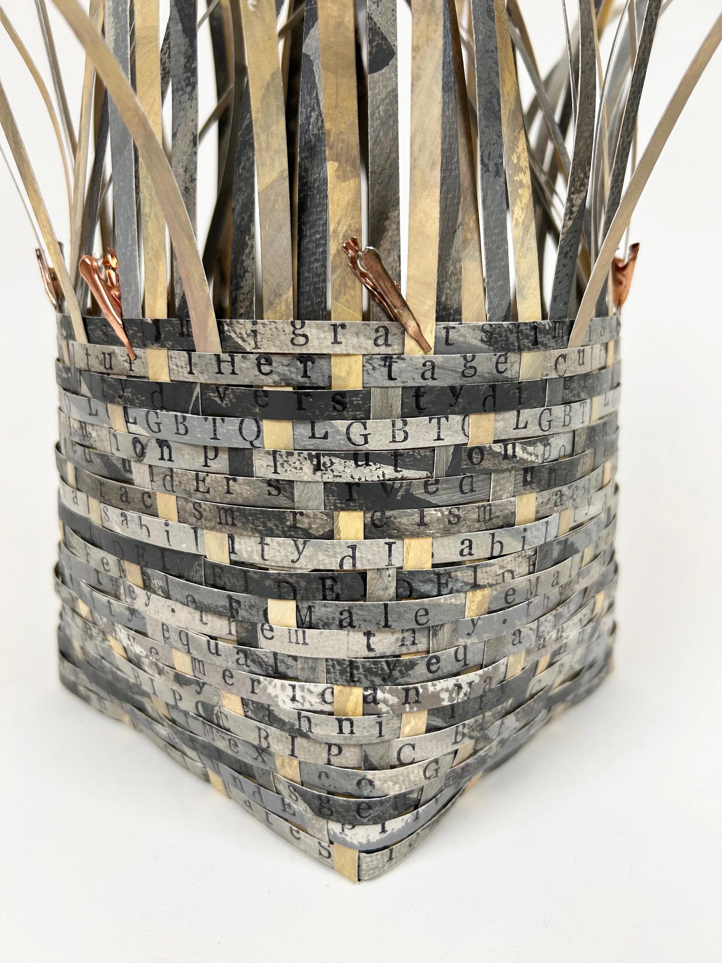 Artistic choices such as weaving and printing serve as metaphors for both preservation and resistance. By weaving these words into each vessel, the artwork ensures they remain visible and valued despite attempts to erase them. The printed text—sometimes partially obscured, yet always present—acts as a testament to the enduring importance of these ideas and identities, inviting viewers to reflect on the cost of their absence.